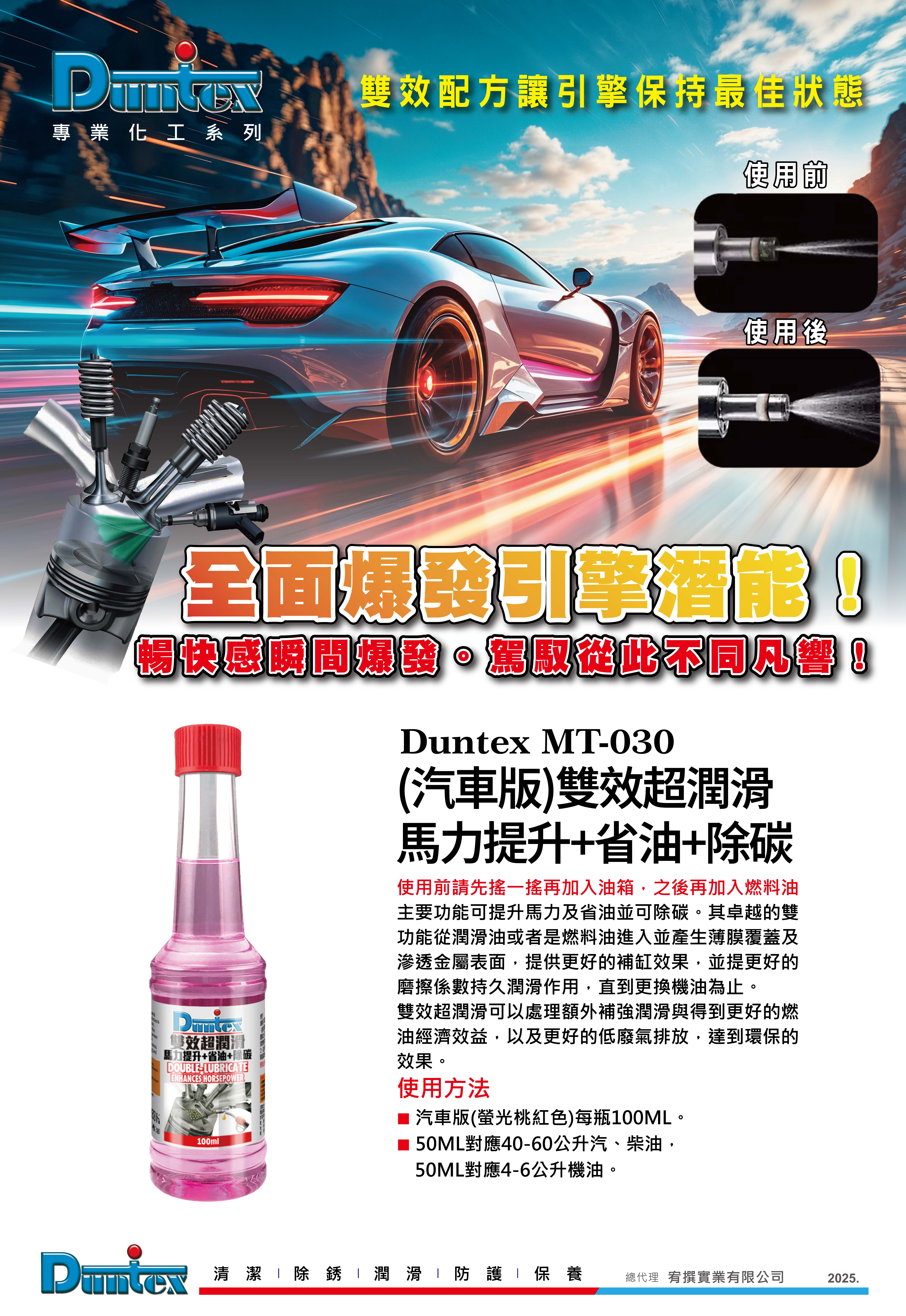 主要功能为马力提升、省油、除碳,双功能填补引擎汽缸壁及活塞等金属表面凹凸面,达到更好的剪切抗磨保护,并增加引擎压缩比及缸压,降低吹漏气,大幅提升燃油燃烧效率,减少积碳形成,提升引擎马力,并使引擎发挥最大功率,进而达到节能减碳的功效。